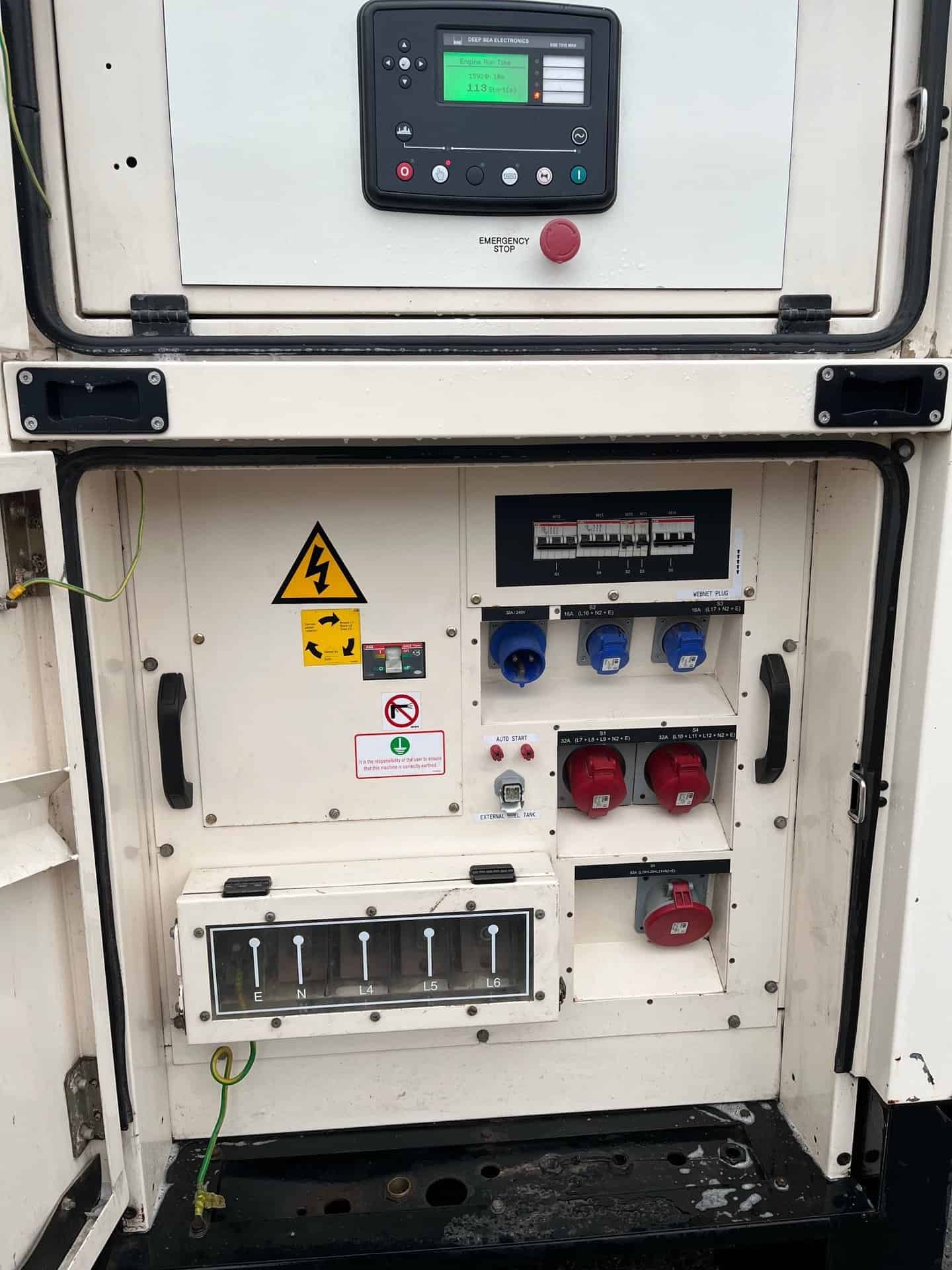 Safety and ease of use are key features of this generator. It comes equipped with a 12V battery and emergency stop button, providing users with quick and reliable shutdown options in the event of an emergency. This ensures that the generator can be operated safely, whether it’s being used in temporary setups or as a more permanent power solution. The fully bunded base offers additional environmental protection by containing any potential fuel leaks, making it compliant with environmental standards and suitable for use in sensitive areas.