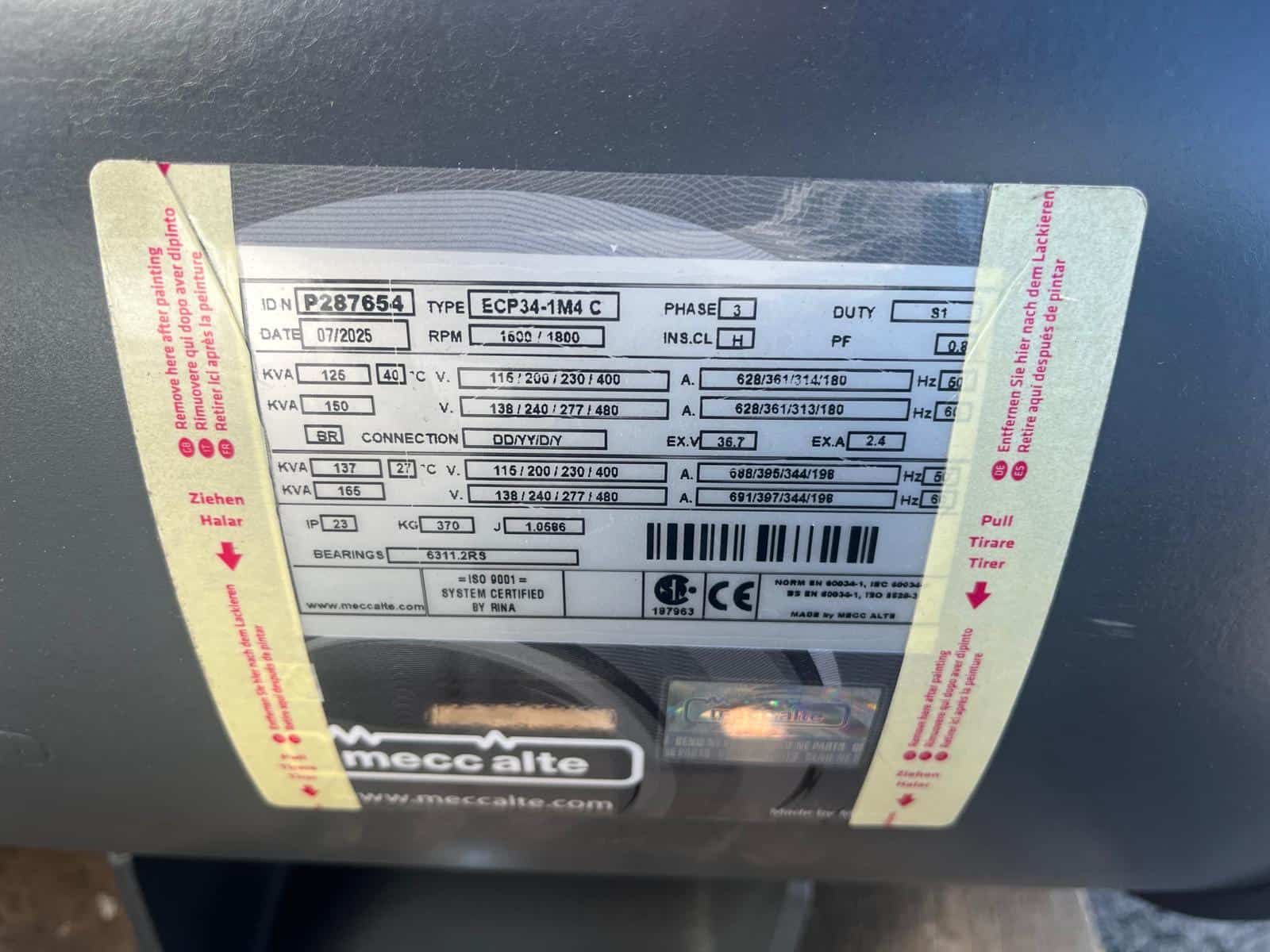 Reconditioned Mecc Alte 125kVA Alternator – Model ECP34-1M4C