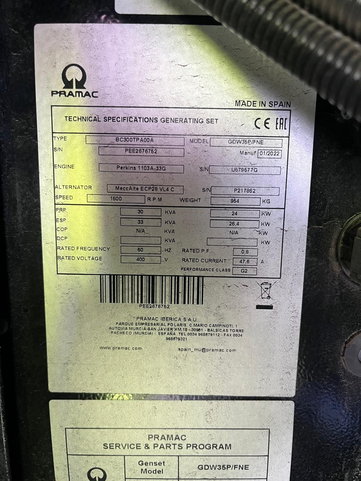 The Pramac GDW35P 30kVA Silenced Diesel Generator 2022 is an exceptional solution for delivering reliable and continuous power across a wide range of industrial and commercial applications. Whether used for prime power or as a dependable standby generator, this unit is engineered for optimal performance and long-term durability, making it an excellent choice for demanding environments like construction sites, events, and backup systems for critical infrastructure.